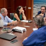 El presidente de la Mancomunidad de Municipios de la Costa del Sol, Manuel Cardeña, acompañado por la consejera delegada de ACOSOL, Matilde Mancha, ha mantenido esta mañana una reunión con representantes de la Real Federación Andaluza de Golf: el presidente, Pablo Mansilla, el vicepresidente, Ignacio Iturbe, y el secretario general, Miguel Navarro, y de la Asociación Española de Campos de Golf, representada por su secretario general, Santiago Urquijo, a quienes ha informado, por un lado, de las mejoras en la calidad del agua regenerada, y por otro, ha realizado una labor de concienciación sobre reciclaje de residuos.